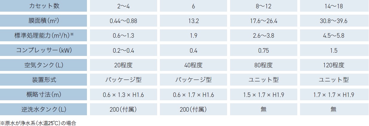 本システムは、お客様の処理水量に合わせて少流量から組むことができる水処理膜ユニットです。