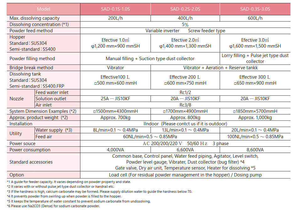 | [1] Dissolving tank capacity | Model | Capacity | |||