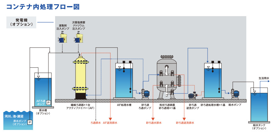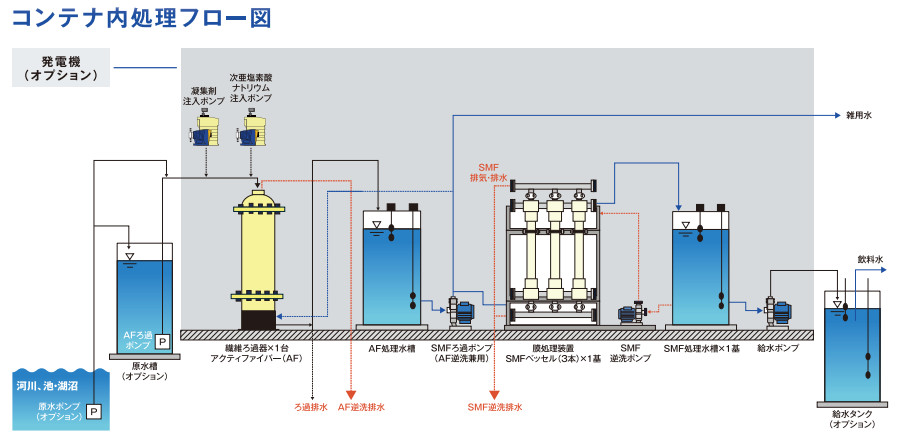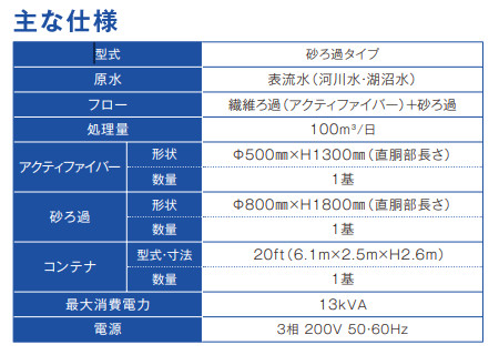 こうした状況を支えるのが「トーケミのコンテナ収納型浄水装置」です。