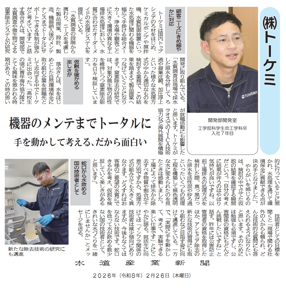 水道産業新聞社様の紙面に当社の社員が掲載されました。